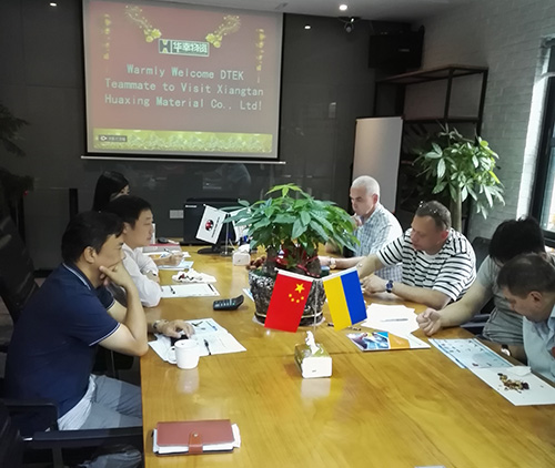 Del 12 al 15 de junio, la delegación de Ucrania DTEK (el grupo energético más grande de Ucrania) visitó la base de fabricación de rozadora de Xiangtan Huaxing Material Co., Ltd. en Mongolia Interior y la ciudad de Shenyang acompañados por líderes de Huaxing, luego vinieron a la sede de la Compañía Huaxing en Hunan para discutir la cooperación comercial.